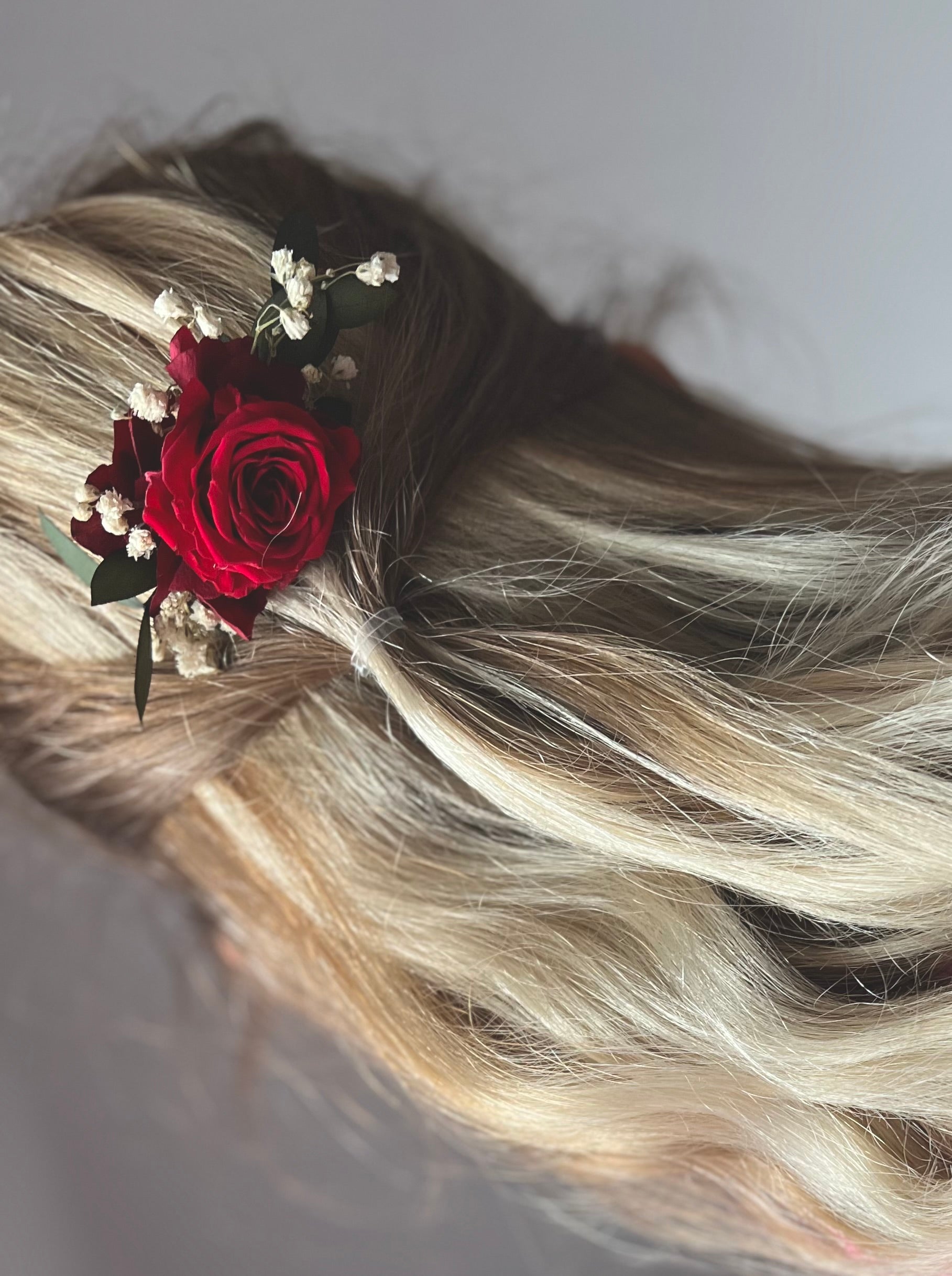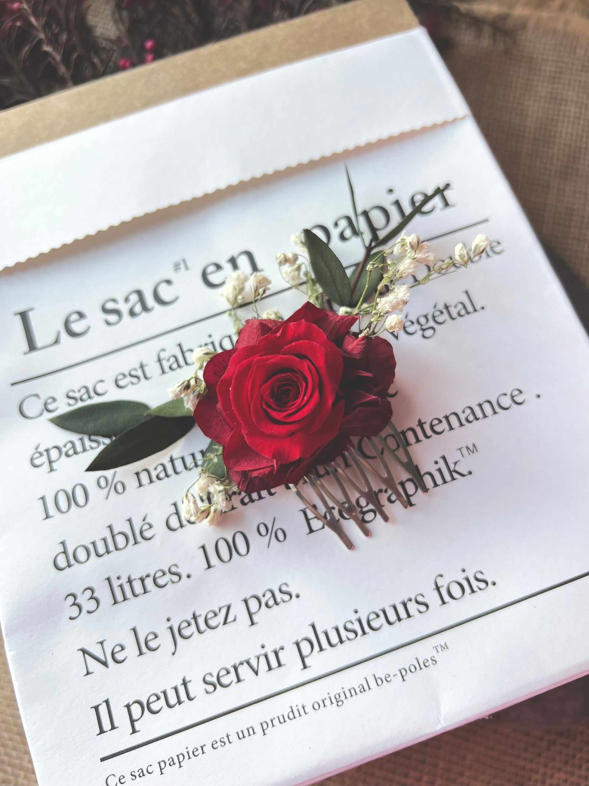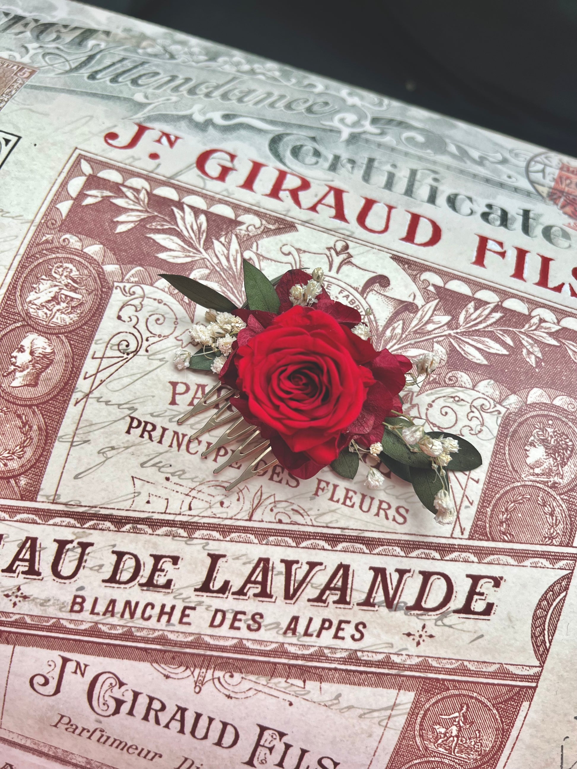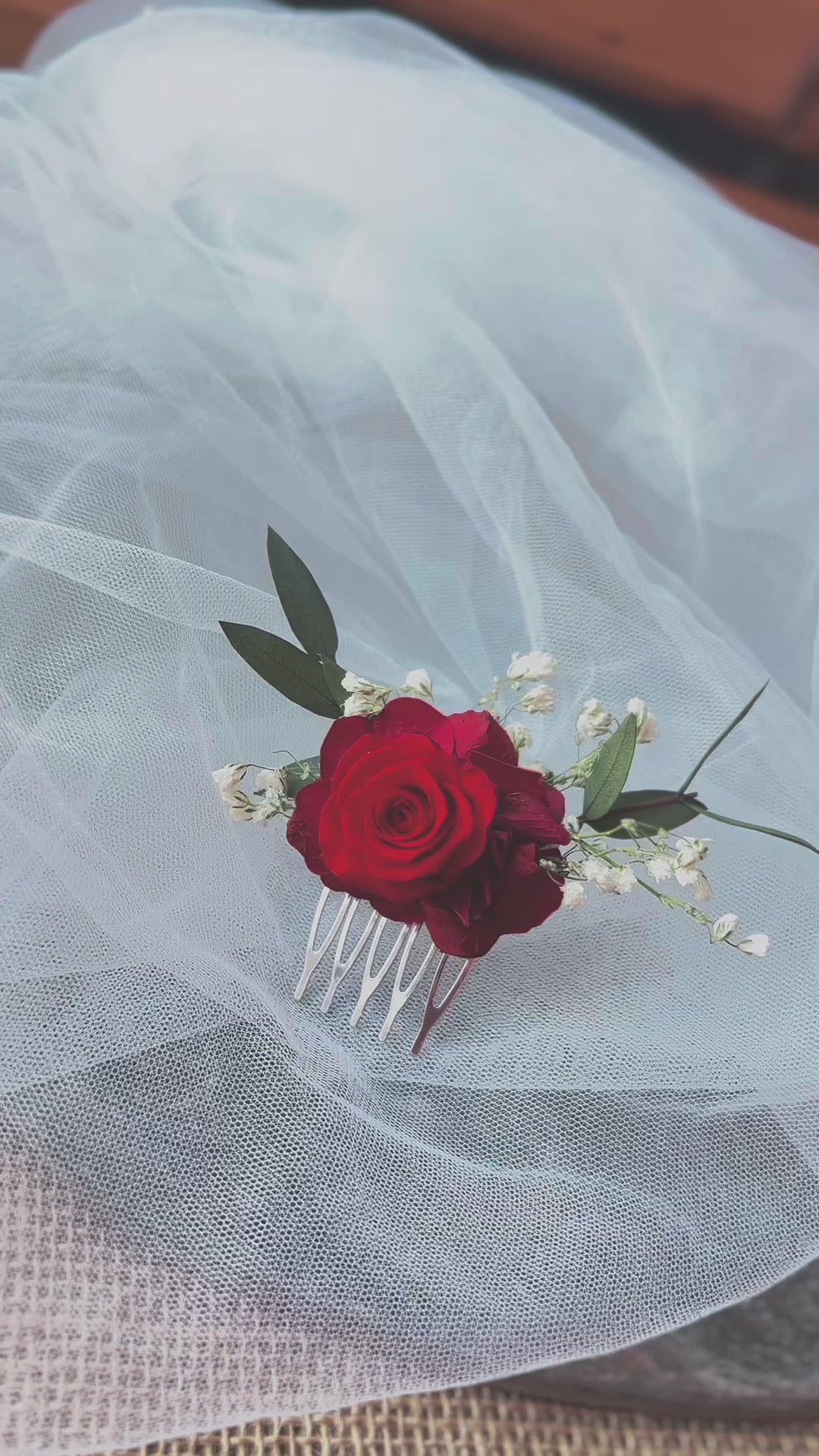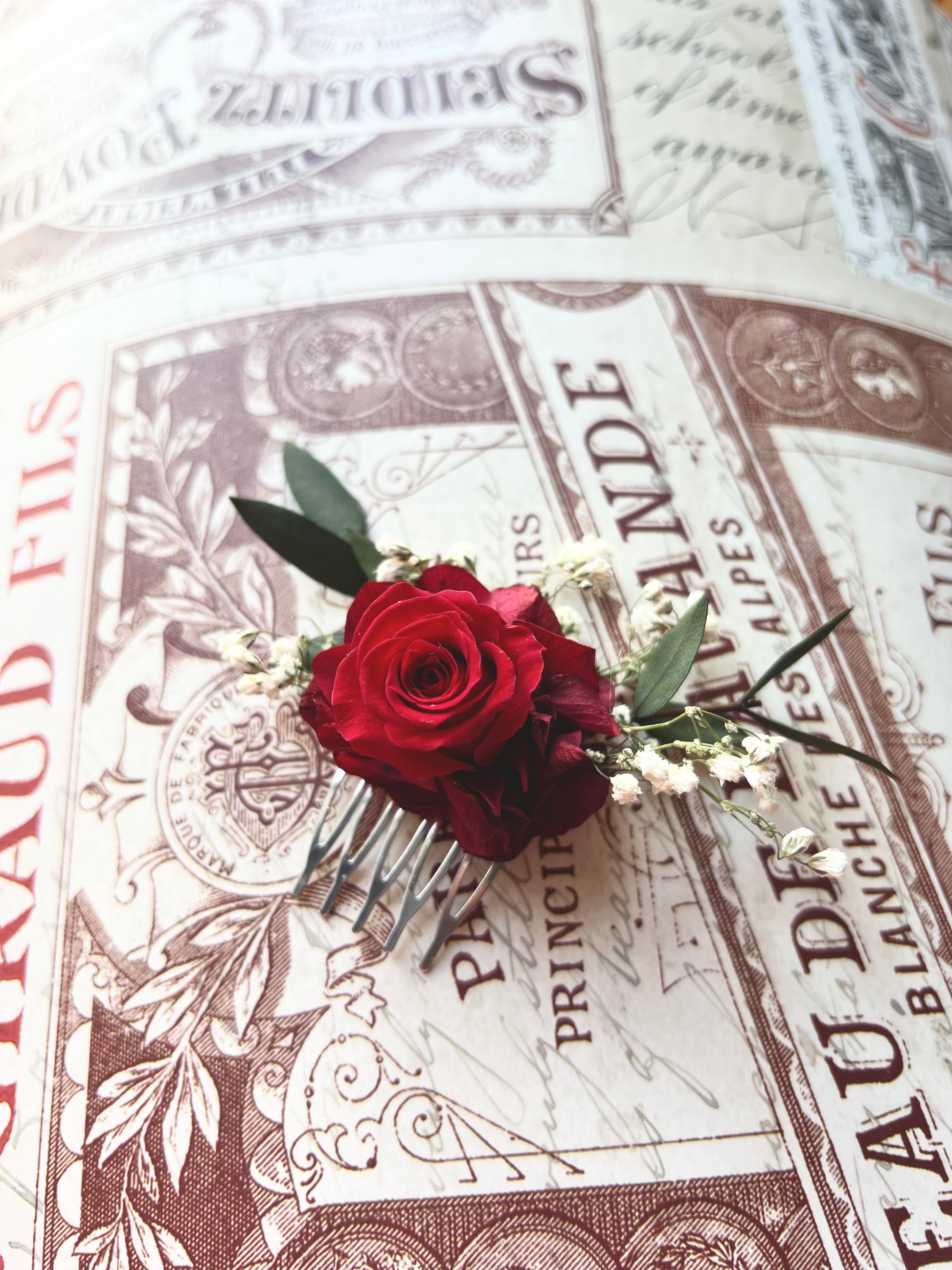 Classic Red Rose Everlasting Bridal Hair Piece, Minimalist Wedding Bridal Dried Flower and Eucalyptus Gypsophila Hair Comb