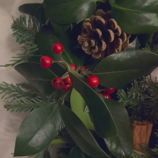 Handmade in Brighton with fresh long lasting Christmas greenery, cinnamon sticks and pinecones.