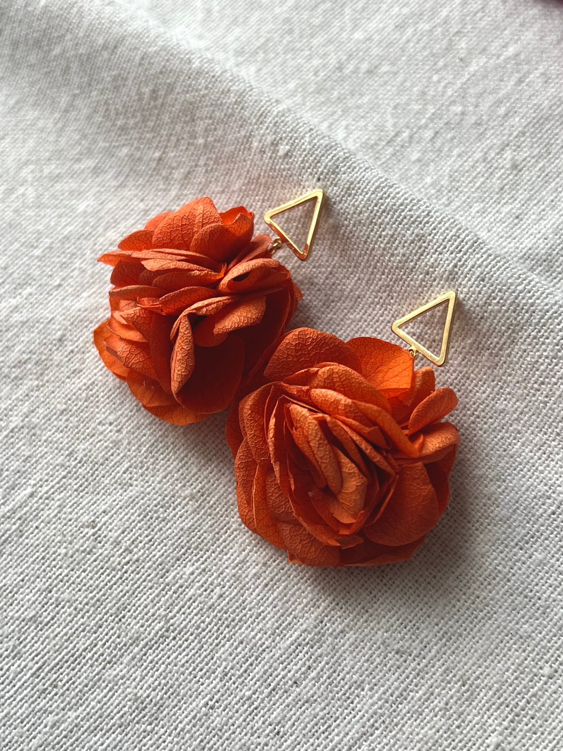 Handmade Orange Hydrangea Earrings with 14K Gold Plated Jewellery