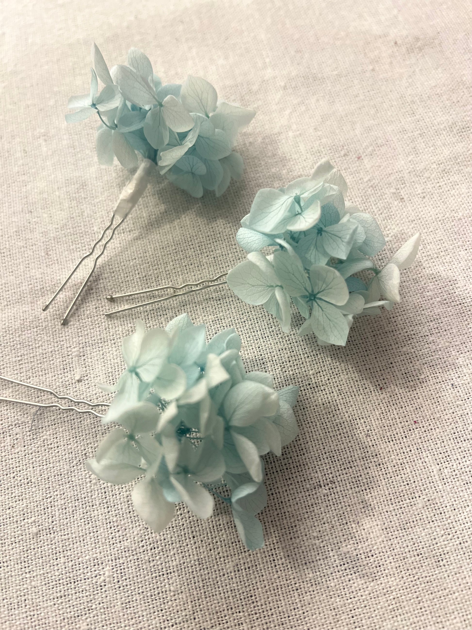 Aqua Blue Hydrangea Hair Pins for Wedding, Bridal Hair Accessories for Beach wedding, Set of 3