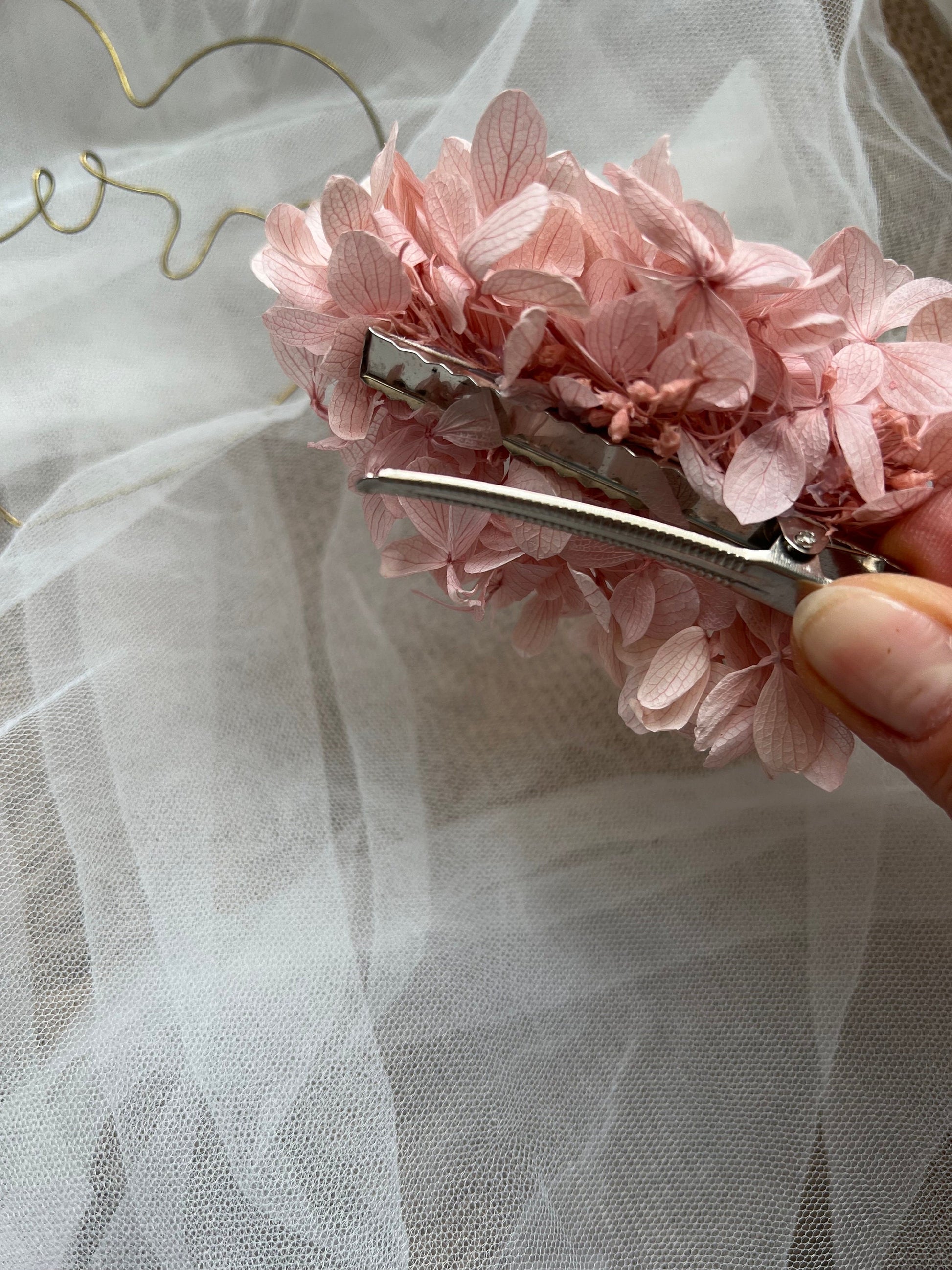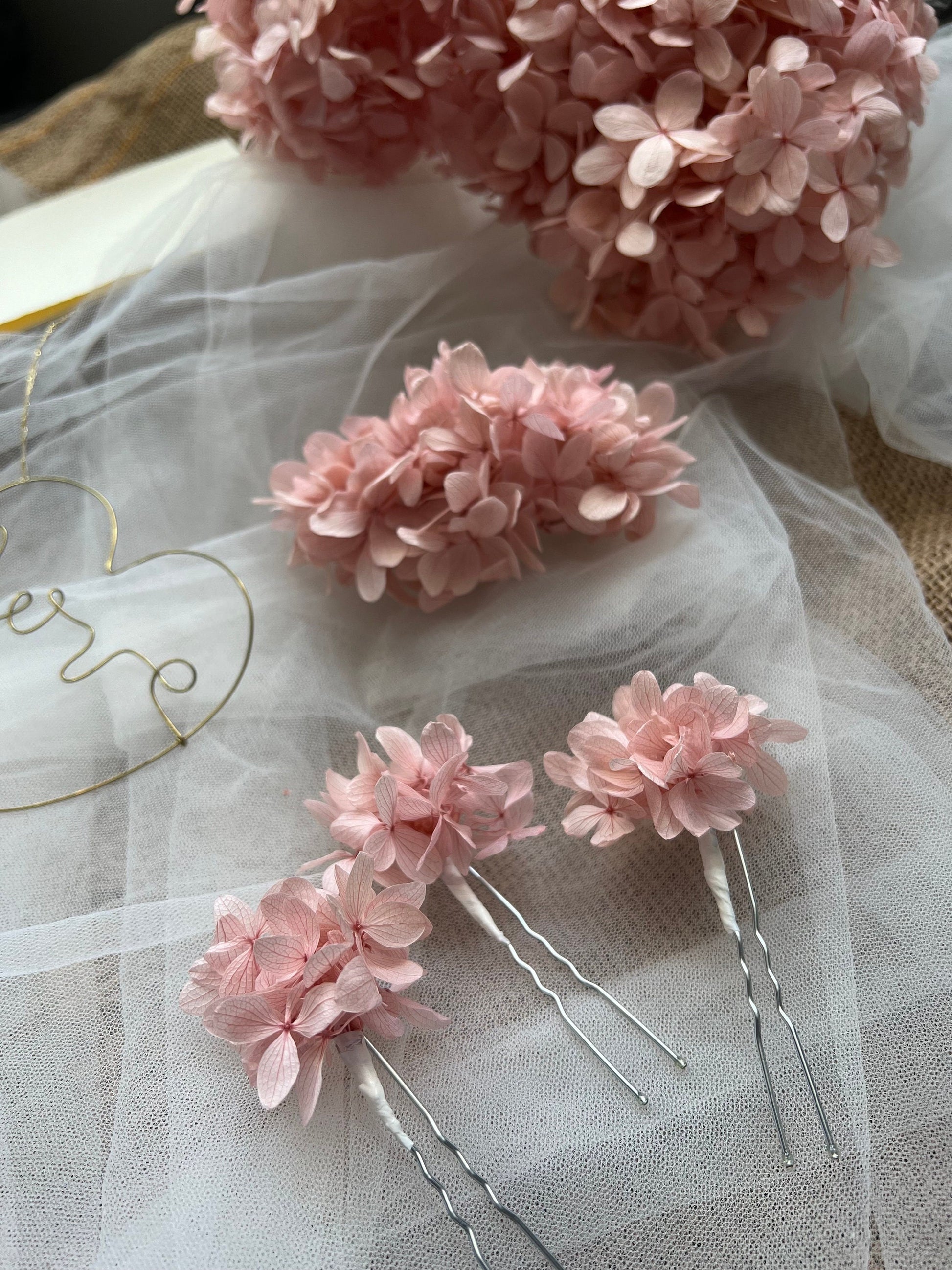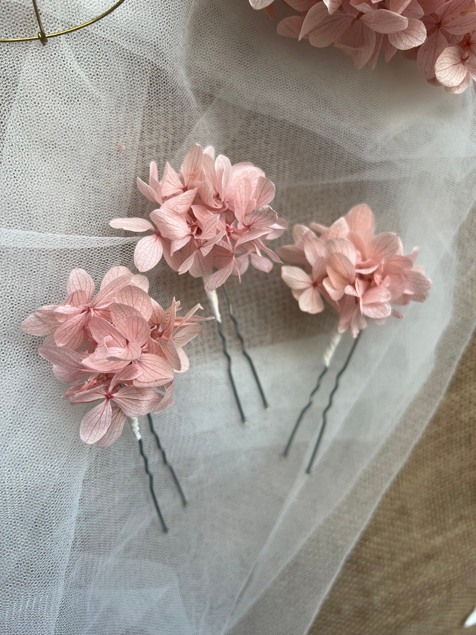 Blush Pink Floral Hair Pins, Bridal Floral Hair Accessories, Dusky Pink Dried Flower Hair Clip, Pink Hydrangea Headpiece, Wedding Flowers