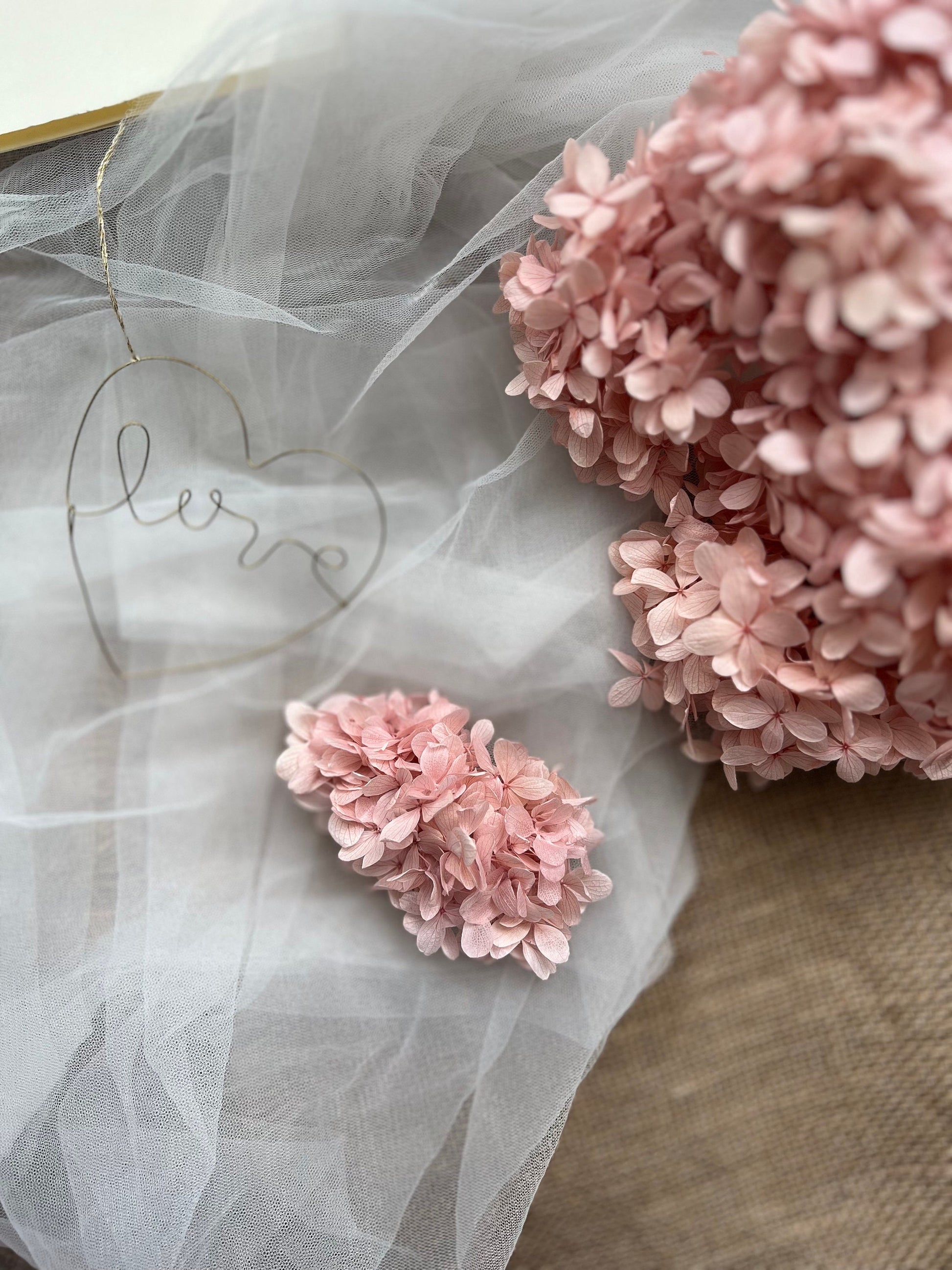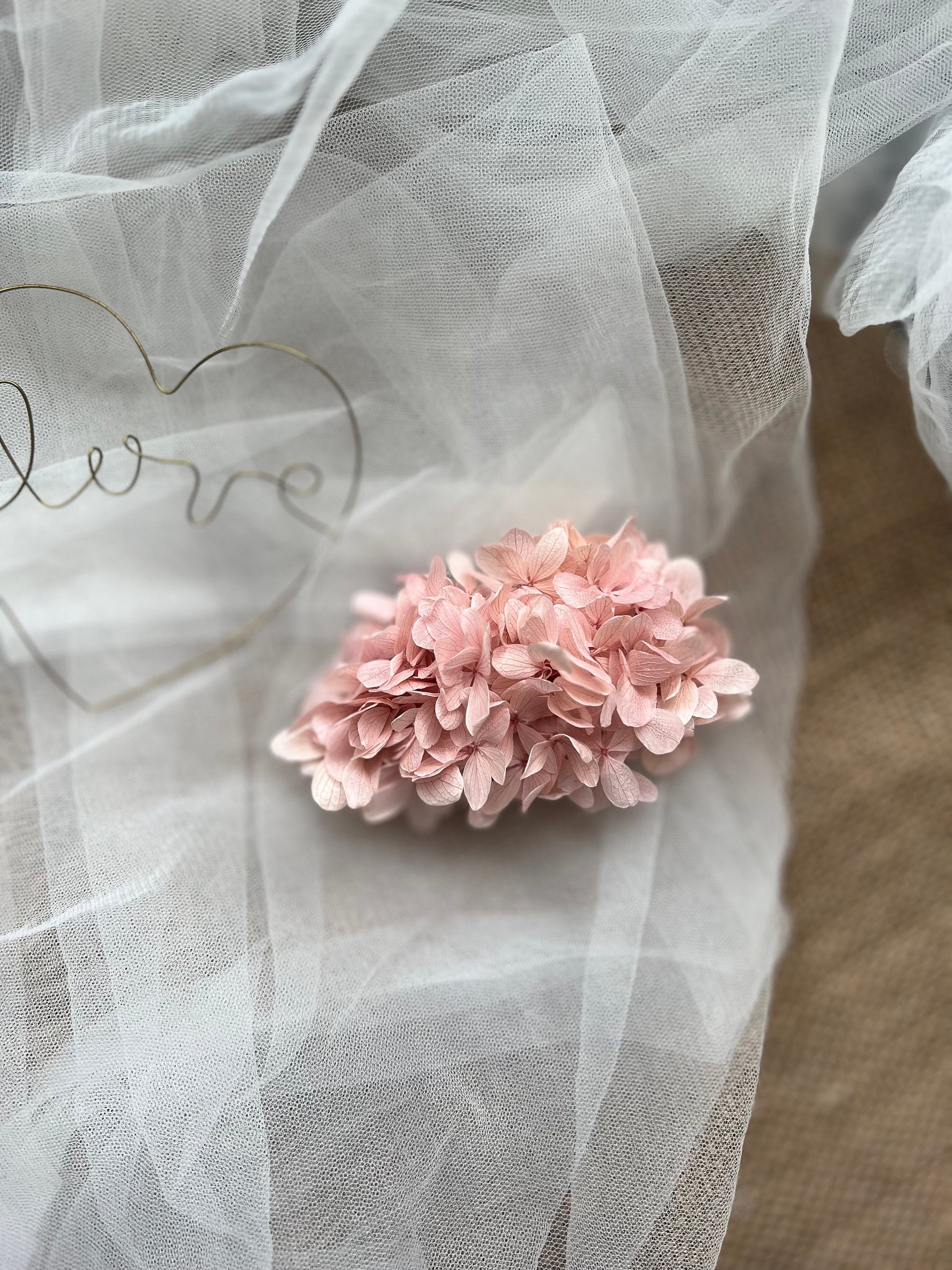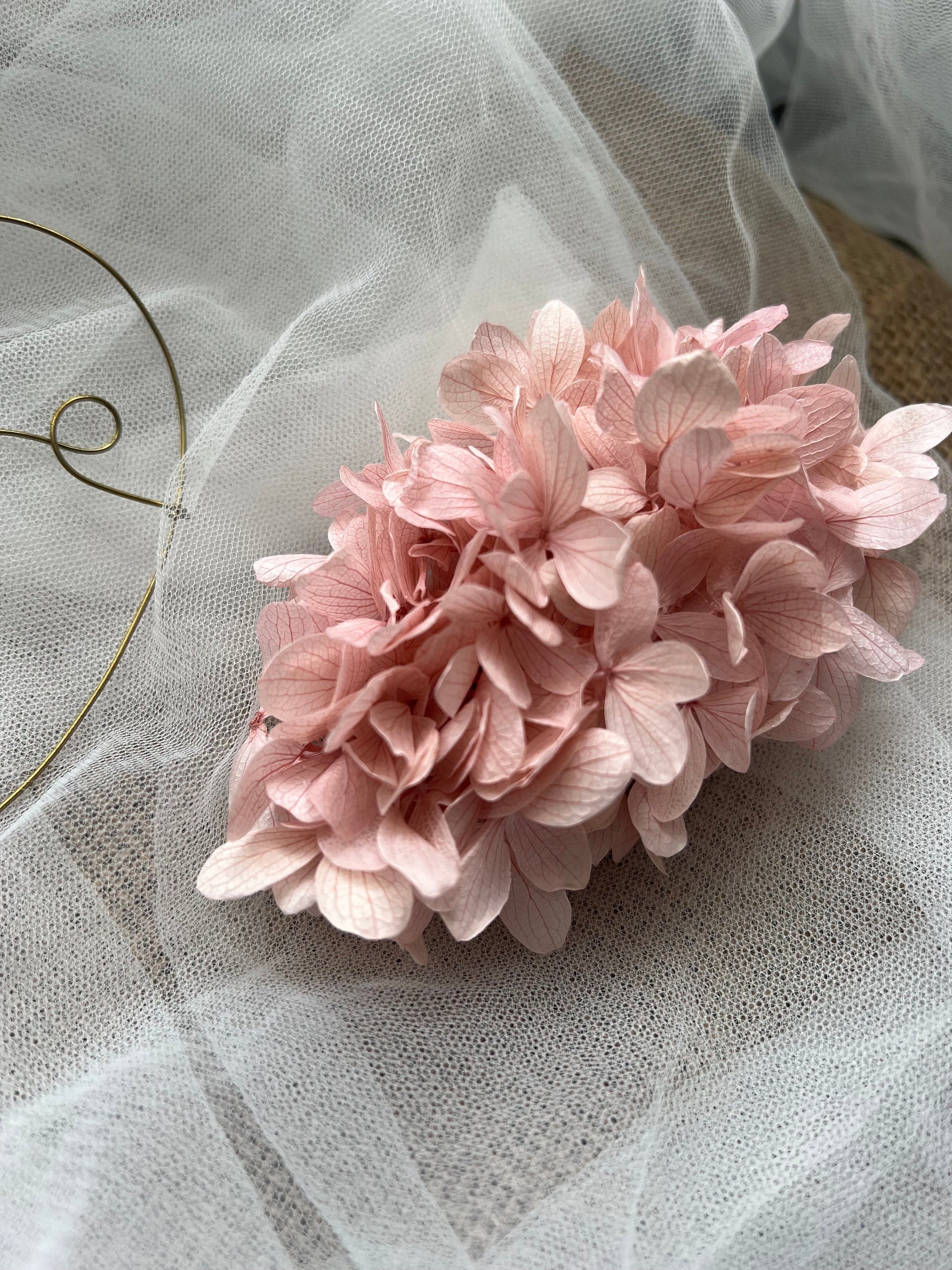 Handmade to order with everlasting real hydrangeas. The flowers are processed to keep their colour and shape for years.
