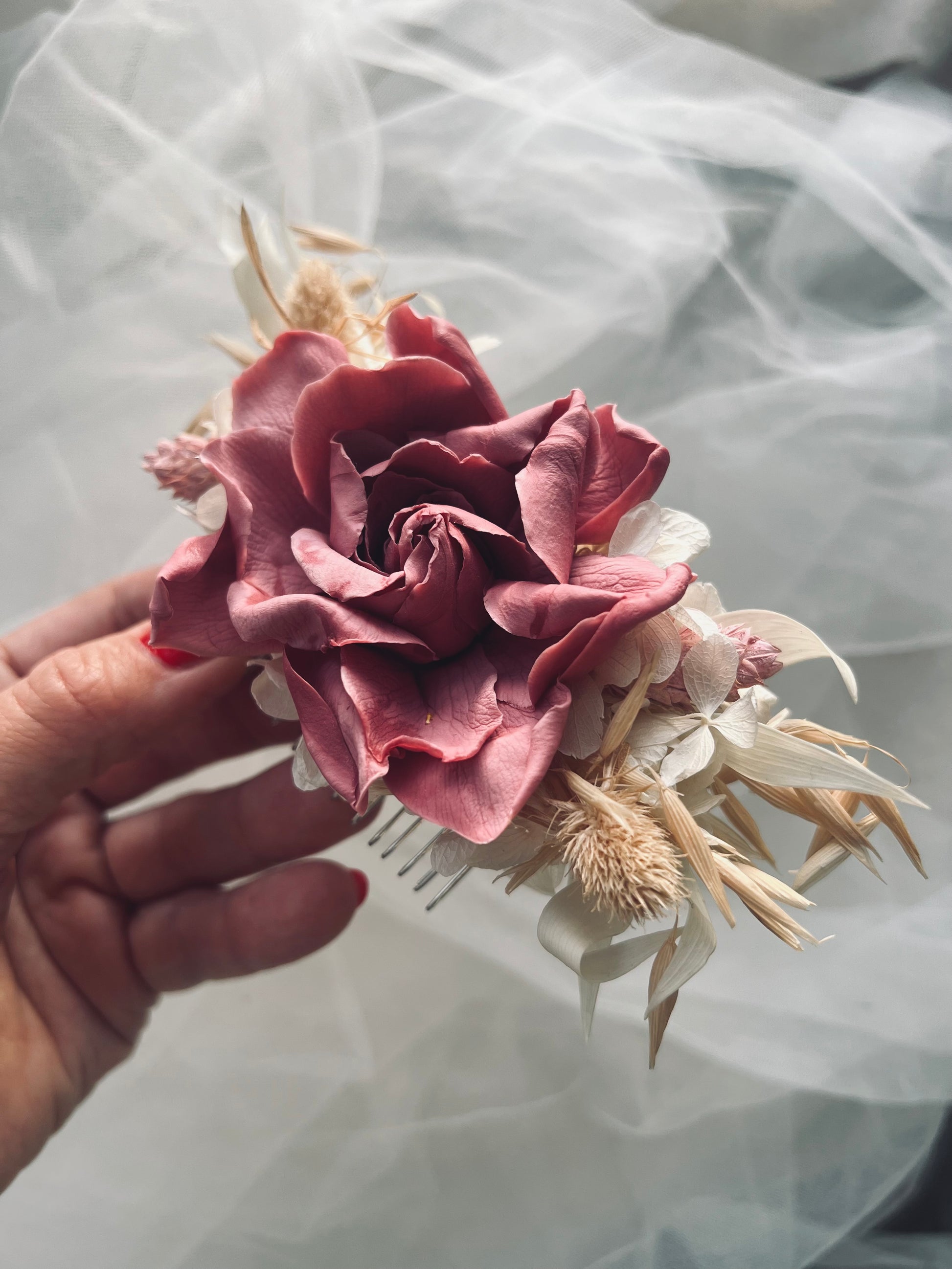 Cherry Pink Floral Hair Comb