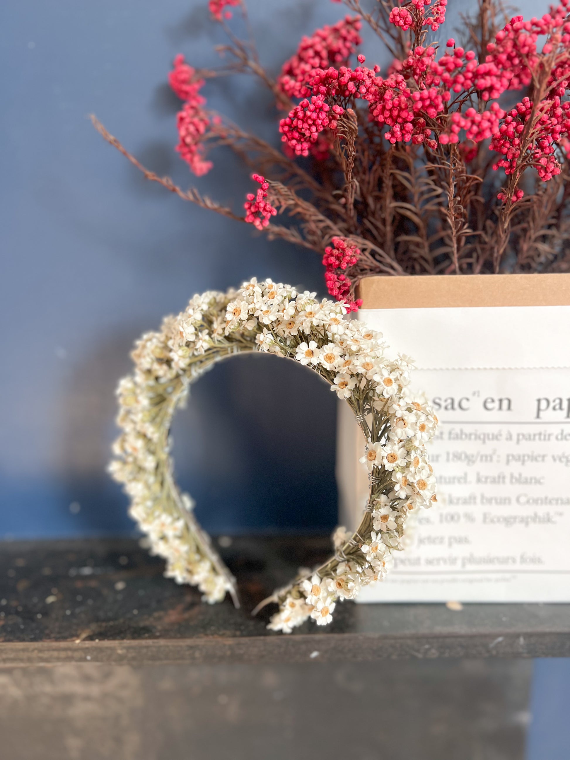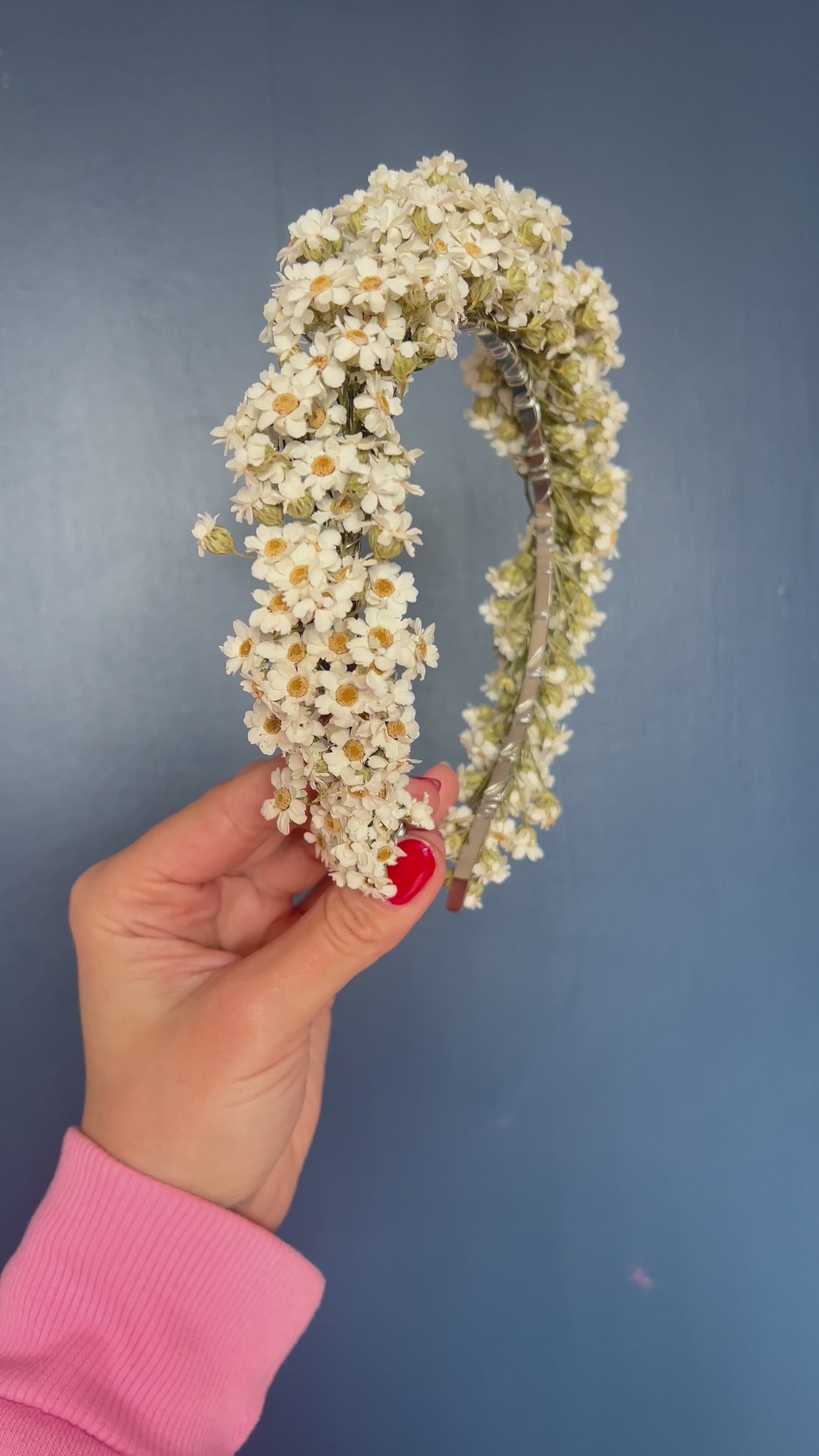 Dried Daisy Headband, White Daisy Floral Tiara, Dried Mini Daisy Flower Crown, Dried Flower Crown
