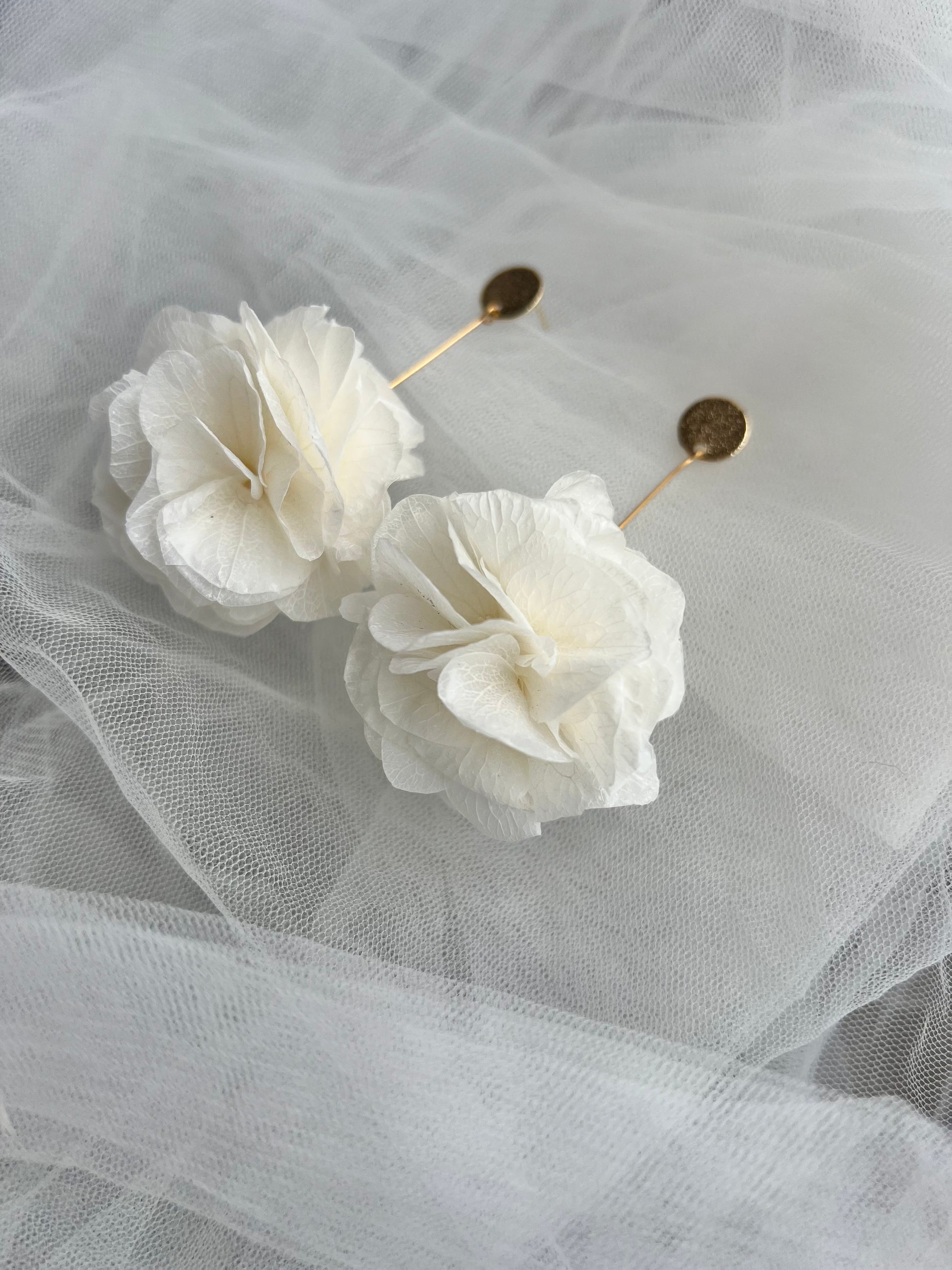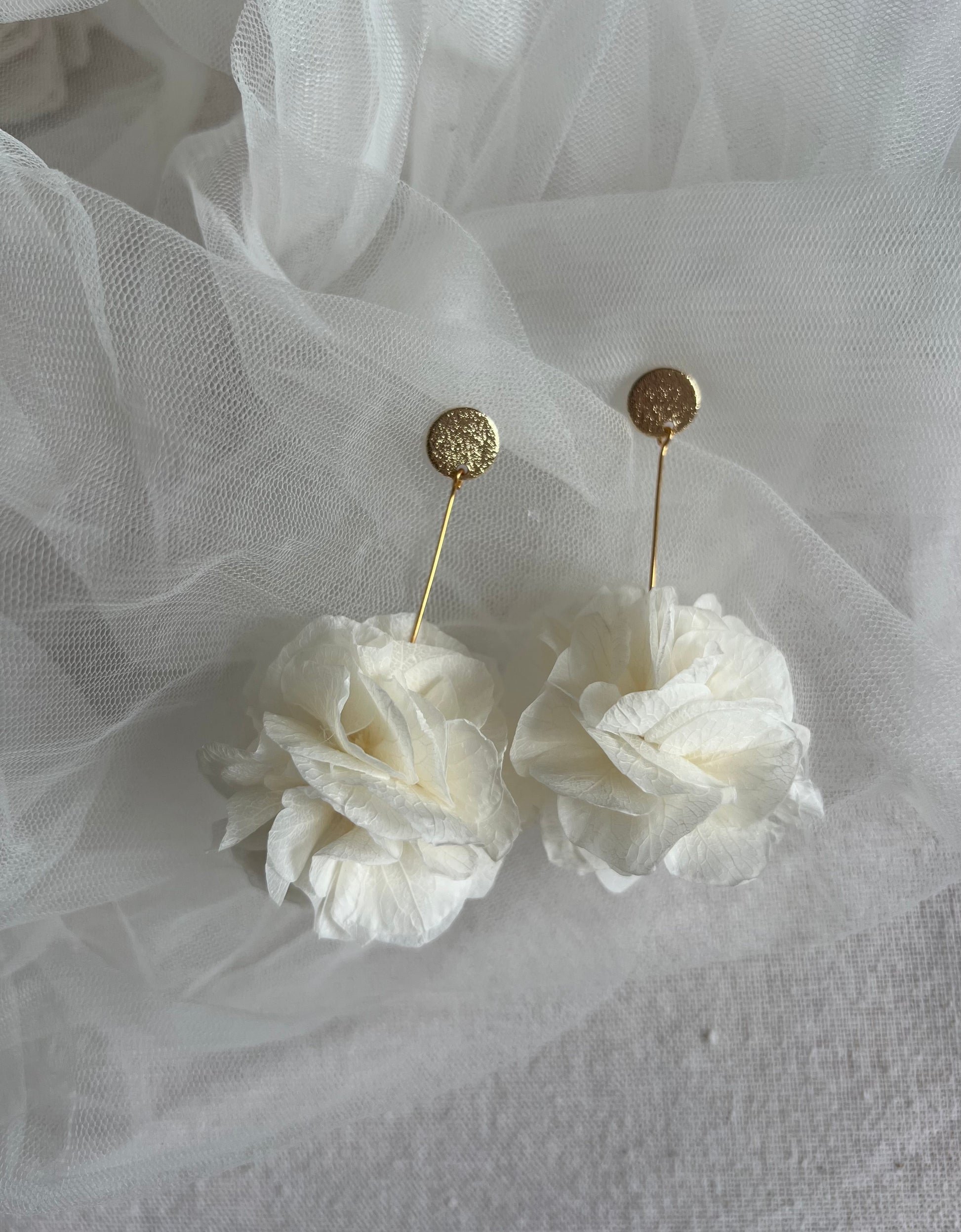 Ivory Floral earrings | Bridal Earrings Hydrangea Earrings | Gold Plated Jewellery