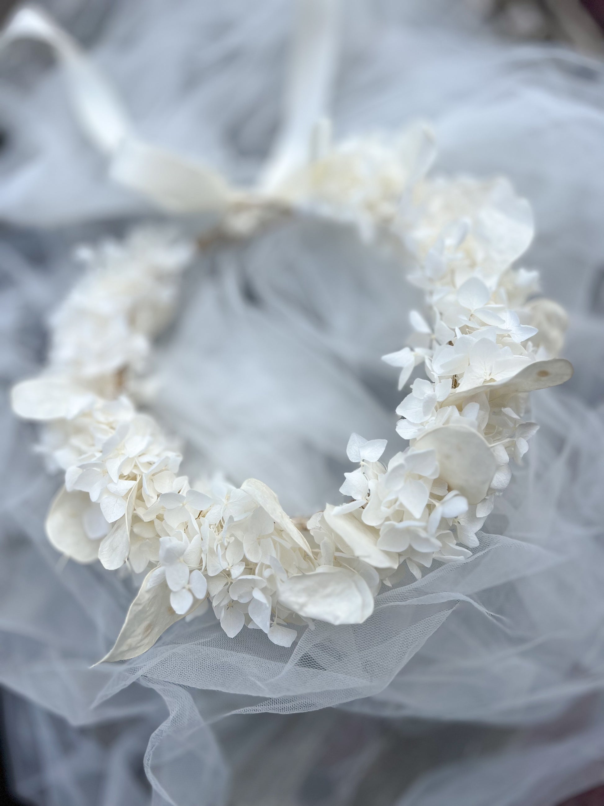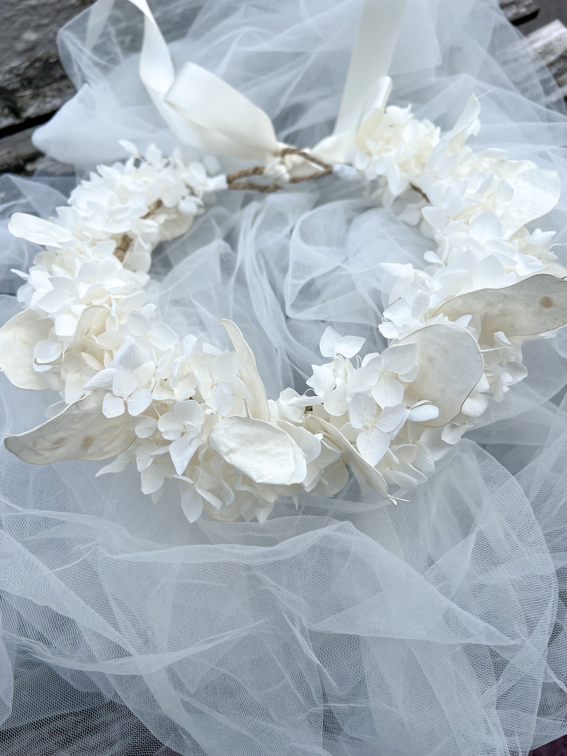 Ivory Floral Headband with Ivory Hydrangeas and Lunaria | Dried Honesty Flower Crown