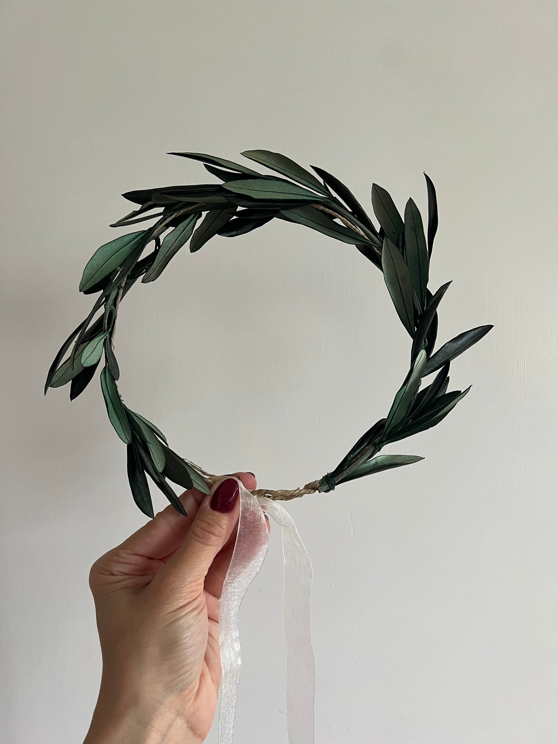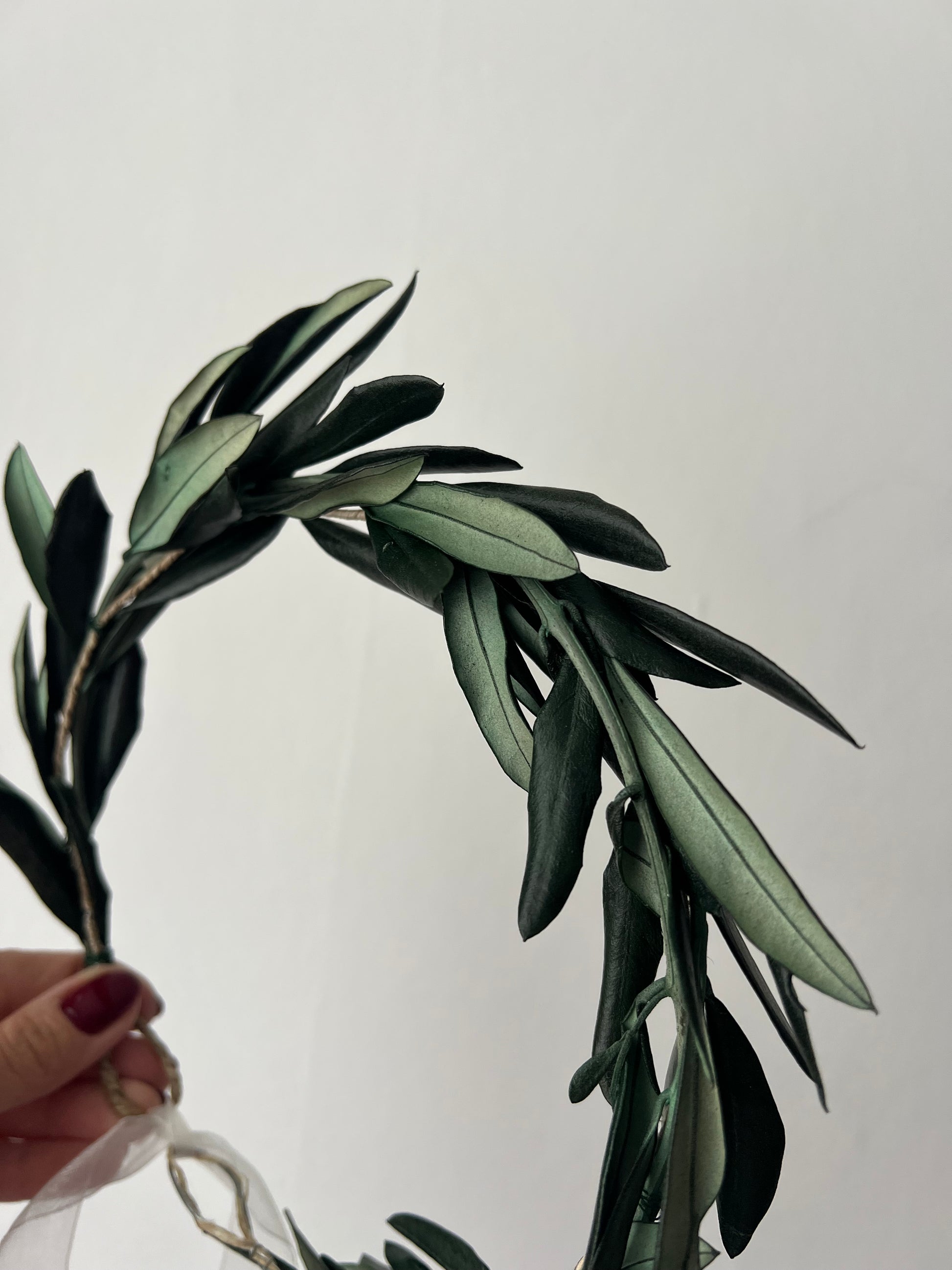 Preserved Real Olive Leaves Hair Wreath, Greenery Halo Crown