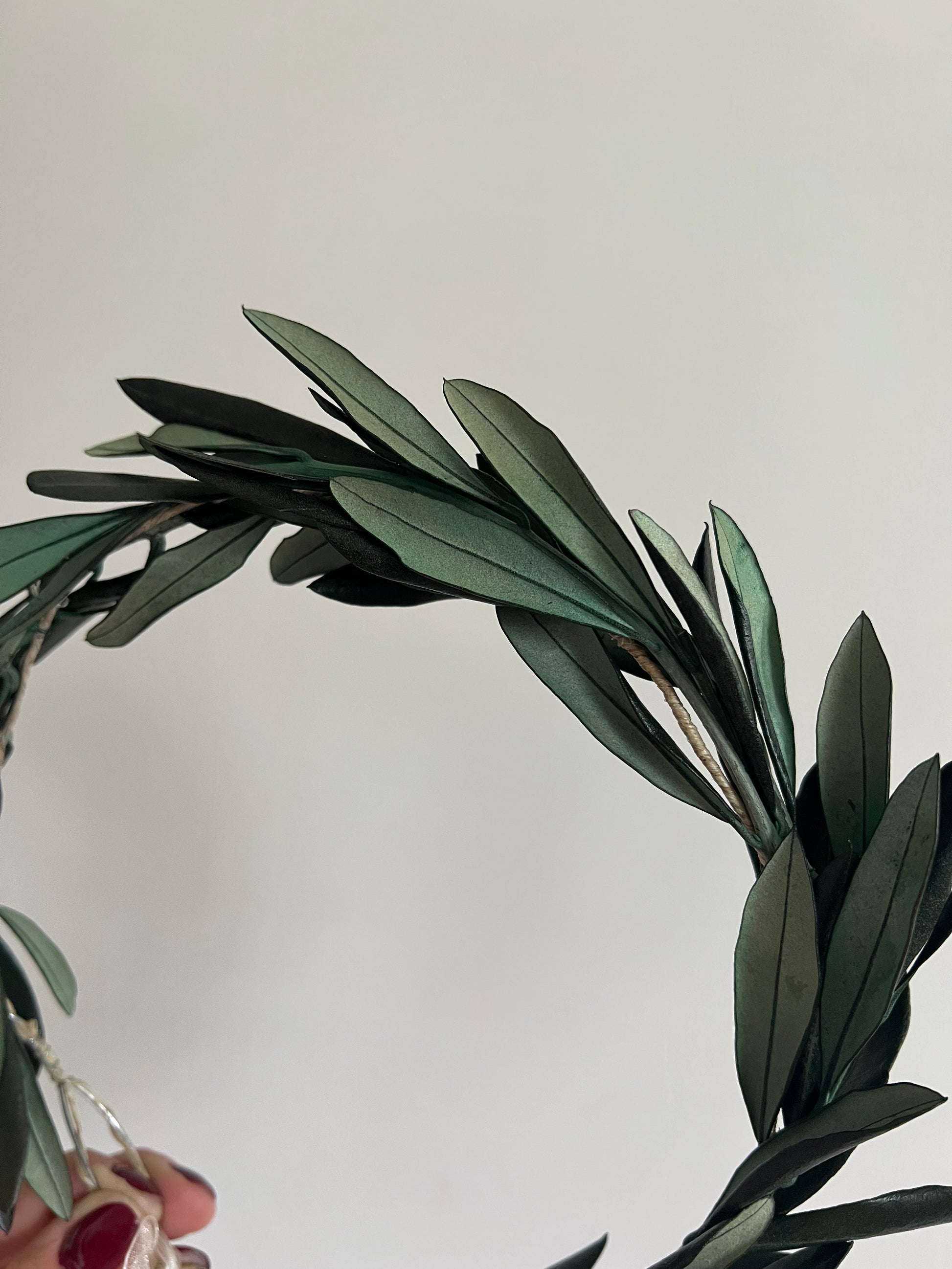 Handmade to order with preserved real olive leaves.