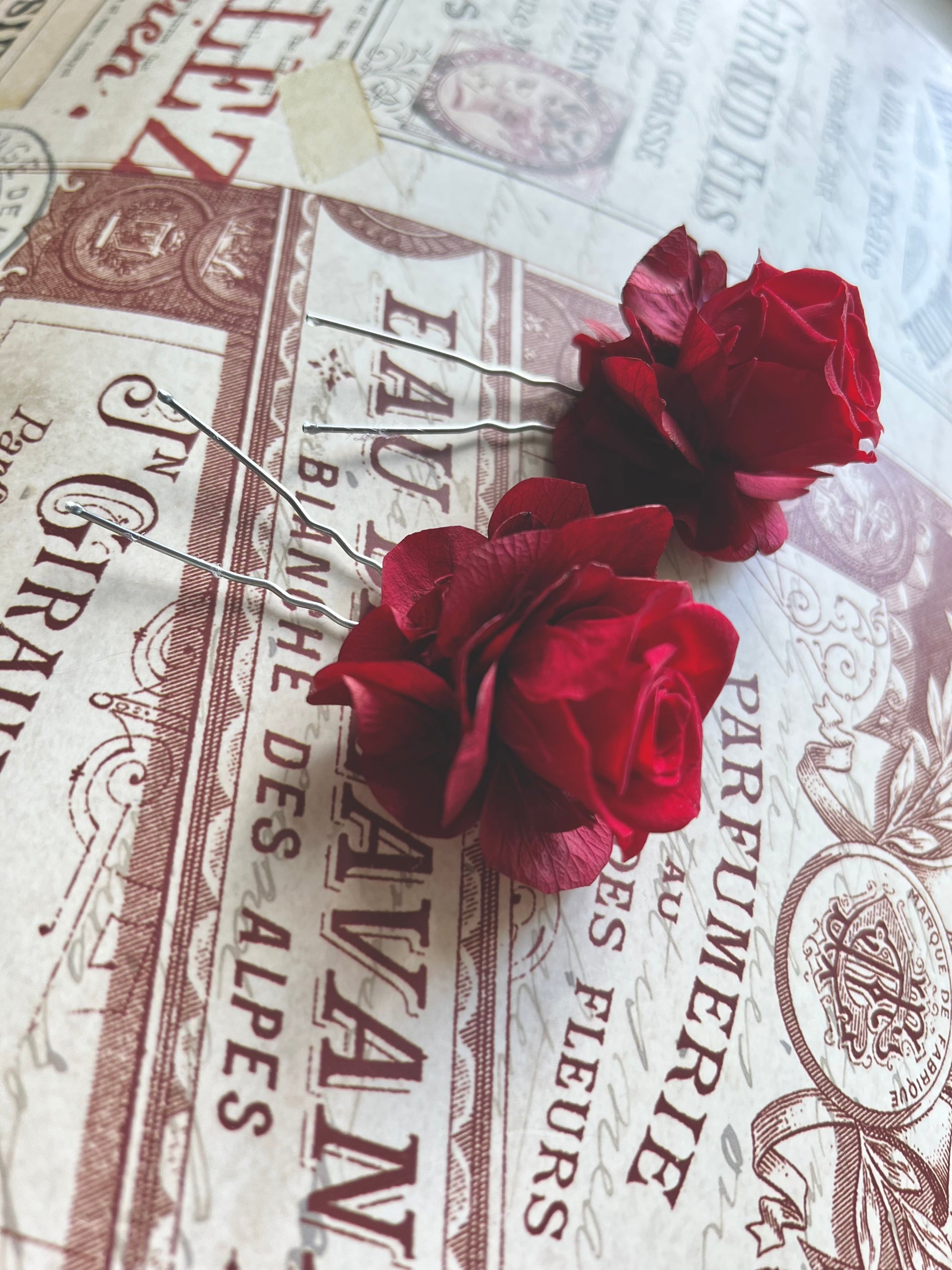 Red Rose Minimal Real Flower Hair Pins, Red Dried Flower Mini Hair Piece, Rose Wedding Hair Pin, Bridal Bridesmaids Flower Headpiece