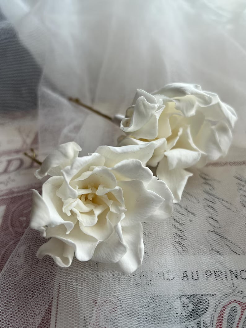 Preserved Gardenia Hair Pins - Bridal Floral Headpiece Set of 2